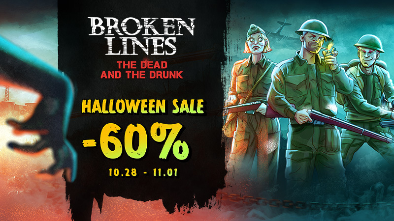 From October 28 to November 1, you’ll be able to get hold of Broken Lines with a 60% off discount! And don’t forget that we have a special content with a side story involving a lot of drinking and zombies! What more could you ask for Halloween?