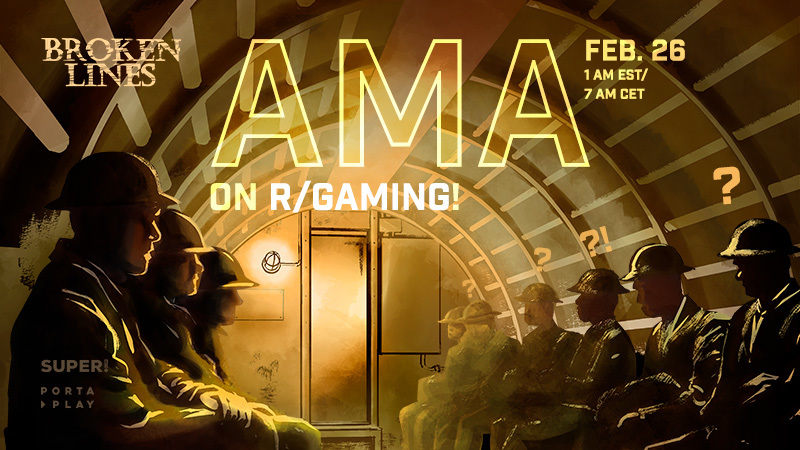 Hello Broken Lines community, Today at 1 am EST / 7 am CET we'll be on https://www.reddit.com/r/gaming/comments/ls4b7b/ama_we_are_portaplay_the_studio_behind_a/ with r/gaming where you will have the chance to ask us anything you want about Broken Lines!