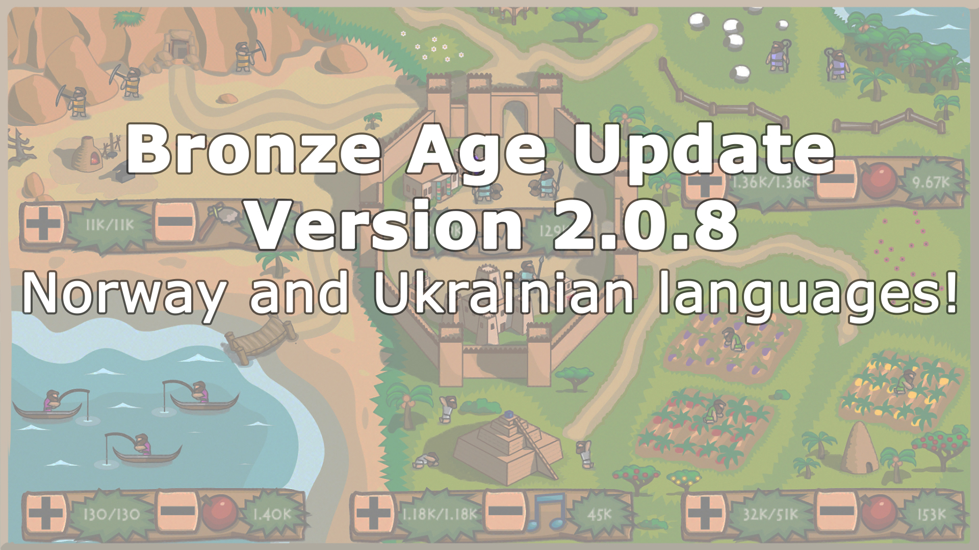 Bronze Age got two more localizations! Thanks to our volunteers from Norway and Ukraine, more people are going to find our how did our ancestors live back in the Bronze Age!