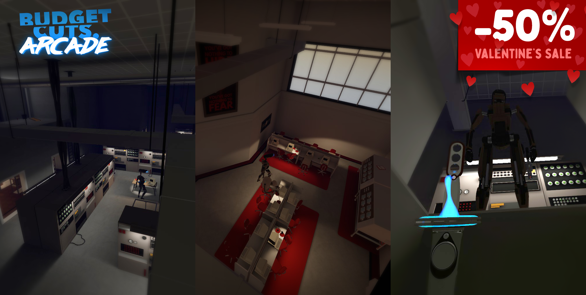 We are very happy to announce the release of Budget Cuts Arcade - a special game mode with a focus on replayability, with 4 new levels that are added automatically in this patch. To access them you need to use the arcade cabinet in the main menu. We’ve also put Budget Cuts on sale for a few days to celebrate the launch of the Arcade mode and hope that you have a lot of fun stabbing our virtual robots. We don’t mind. It’s fine. It didn’t take us a long time to make them or anything. I’m sure nobody will miss them...