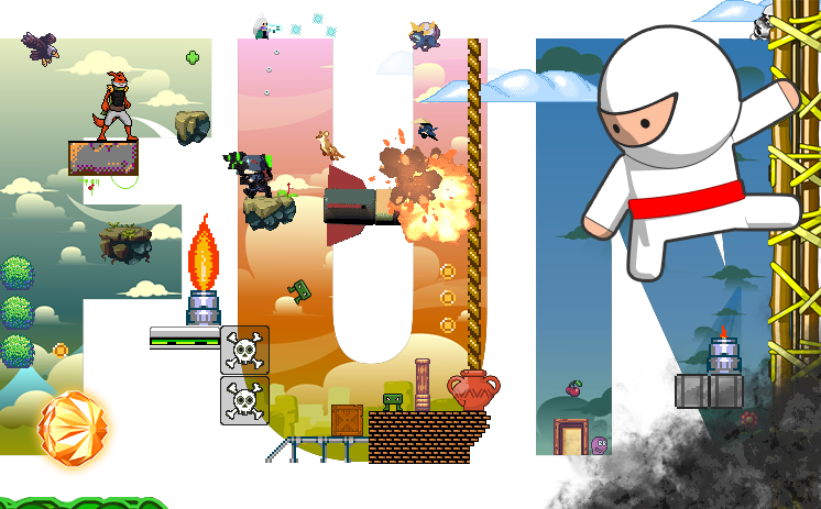 Current tile list (wall of text): Audio, Auto-Tile, Background (Parallax), Block (Default), Block Multi-State, Bomb, Builder (Think minecraft), Camera (20+ different type), Camera Gui, Check Point, Clouds and Shadow, Damage, Decal, Dialog Bubble (Simple), Dissolver, Door (key, lever, pad), Dynamic Circuits (visual), Dynamic Sky, Dynamic Grass, Fog of War, Goal, Gradient Sky, Grappling Hook, Hang System (vines, poles), Image Effects (300+ camera effects), Jetpack, Jumppad, Killbox, Ladder (standard and grow), Light and Shadow, Lightning, Lightrays, Manager, Message Flash, Music Notes, Numbers2048, Offscreen Indicator, Particles, Passthrough, Pickups (Lots of options), Platform, Player, Player Ai, Reflection, Screen Transition, Scribble Physics, Slingshot, Spawner, Start Position, Teleportation, Teleporter, Terrain, Trigger, Volume, Waypoint, Weapon and more tiles on the way! And combine these with thousands of properties to make each tile incredibly unique and yours. :)