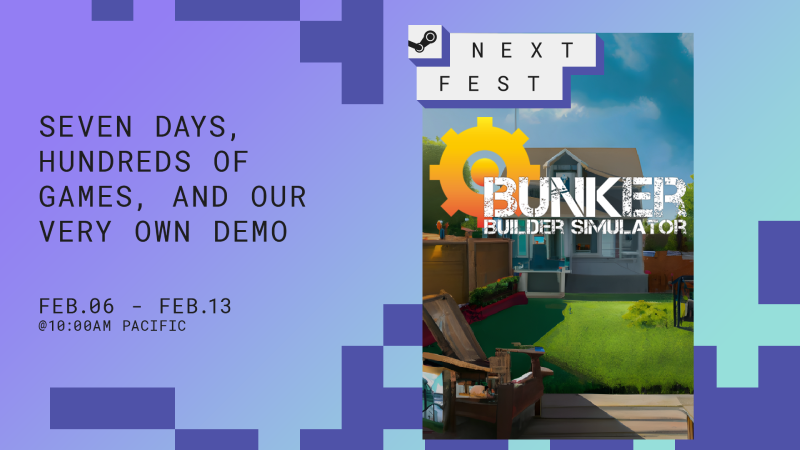 HELLO PLAYERS! ๐We are happy to announce that the demo version of Bunker Builder Simulator is a part of Steam Next Fest February 2023 Edition! ๐ชYou can play our demo right now! Just go to the Steam page, and you will see a green banner, hit the "Download" button! โคต๏ธ Play now and leave us some feedback, we really count on your suggestions and ideas. Join our Discord! ๐ Have fun! Bunker Builder Simulator Team ๐ท Build your BUNKER! February 11, 2023