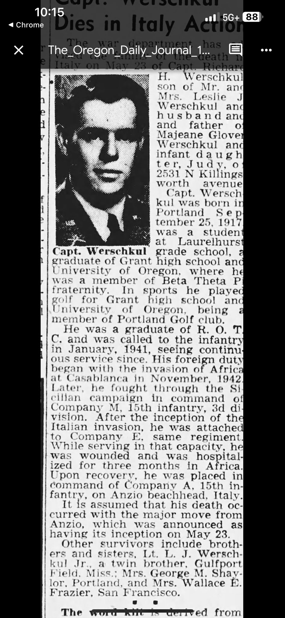 A 3rd Infantry Division captain found by random walk today. Then looked him up and learned he died at Anzio.