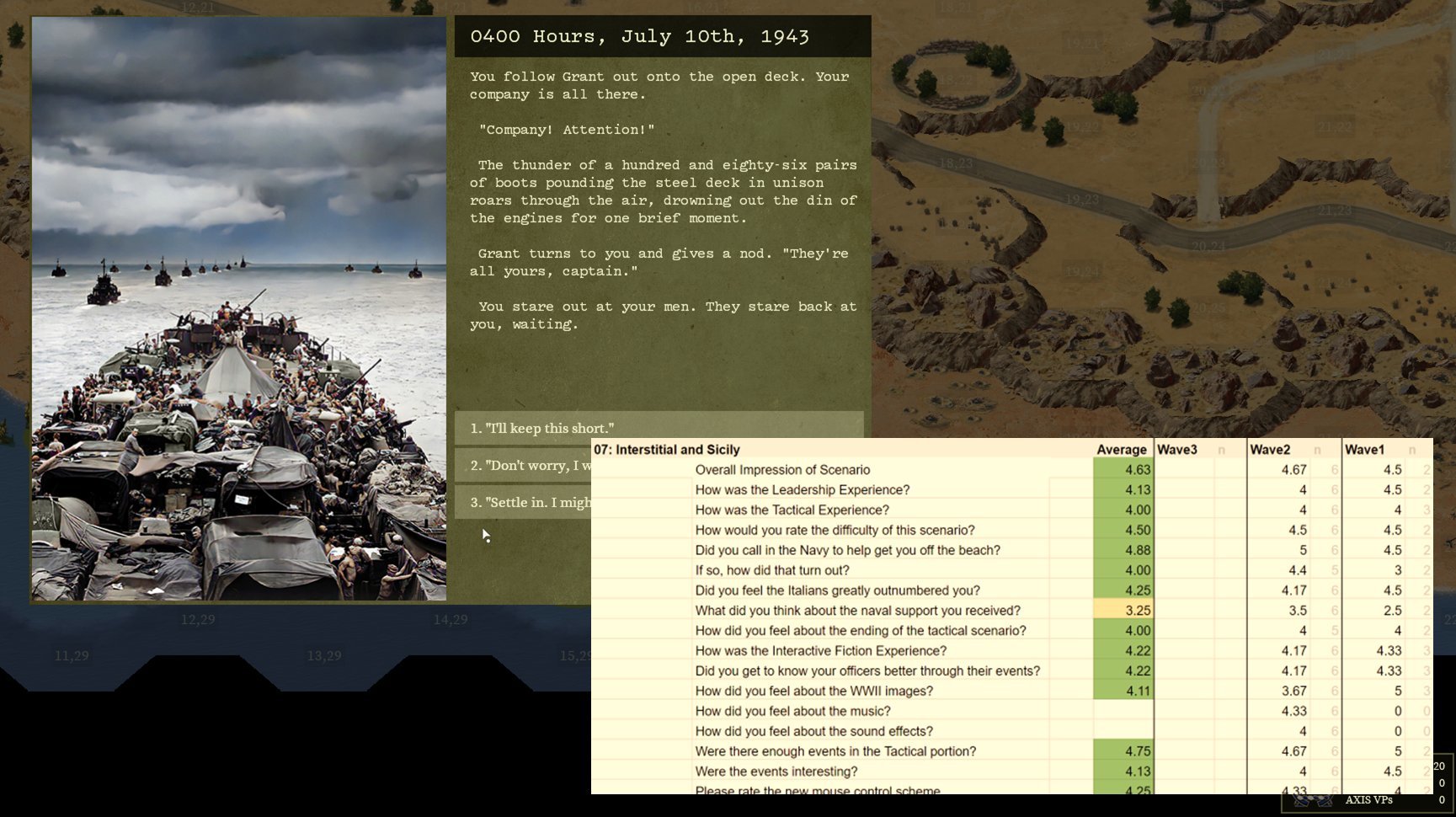 Here are the numerical surveys from playtesters who took part in "Sicily landing" over the last couple of weeks.