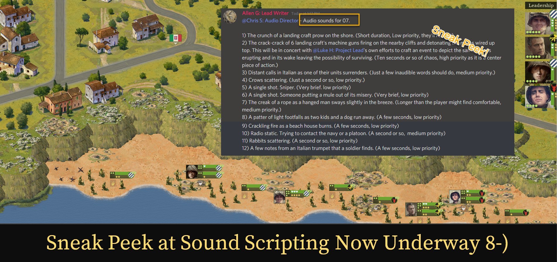 "The crunch of a landing craft..." "Distant calls in Italian..."