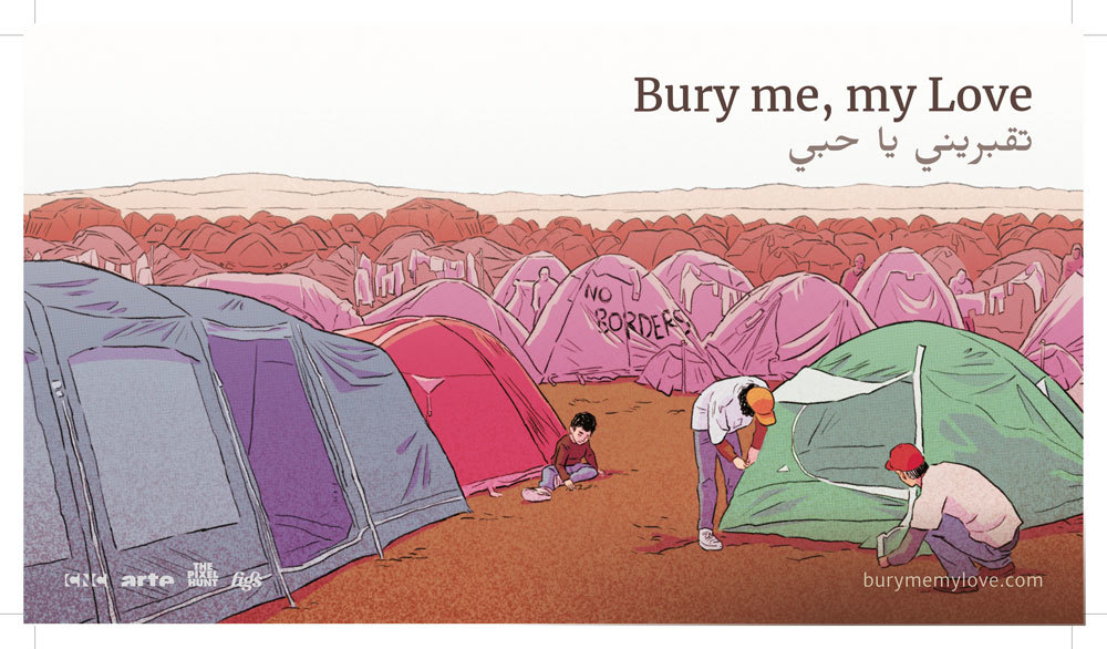 In Bury me, my love, we follow Nour, a Syrian migrant trying to find her way to Europe. Her husband Majd, who remains behind in Syria, communicates with Nour, advising her as best he can so that she reaches her destination safely.