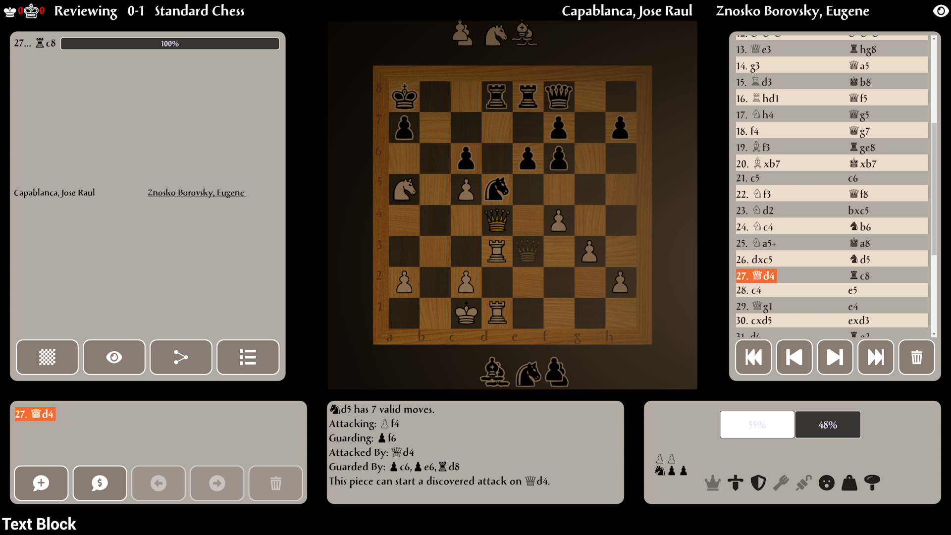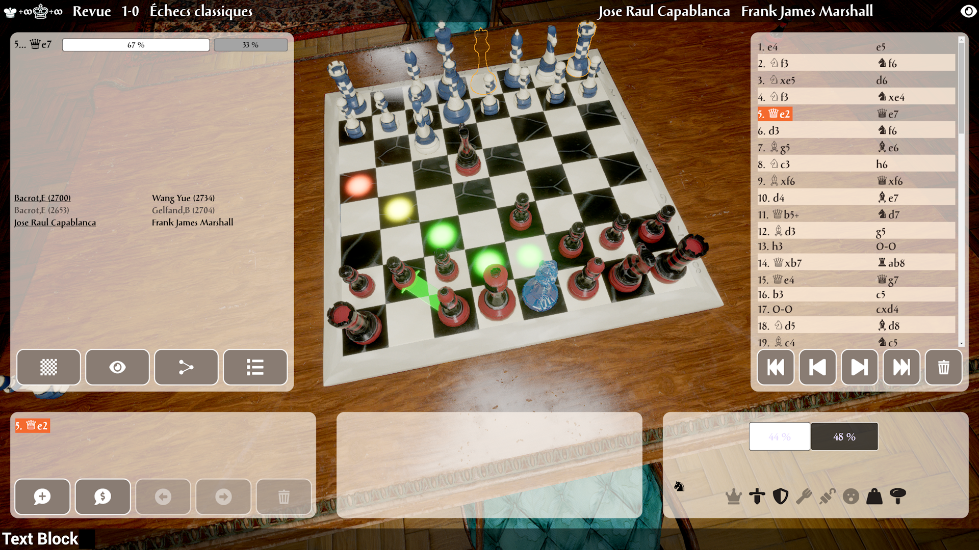 In order to finalize it, I had to add the letters and numbers of the squares, the markers for the last move and the possible moves. These are colored in review mode (but not in game mode, as this would be considered cheating).