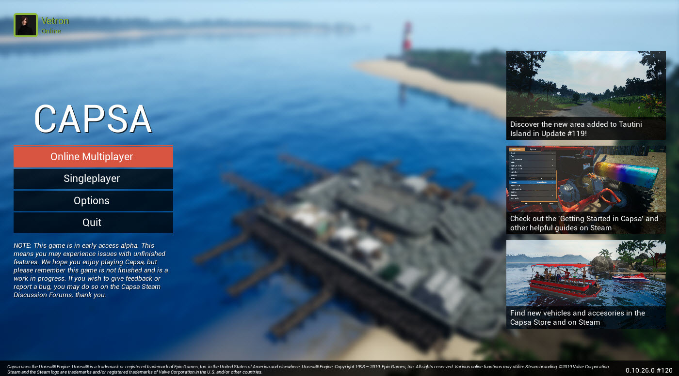 This months update features considerable improvements to the ground vehicles as well as migrating Capsa to the latest Unreal Engine 4.21 (from 4.19). Ground vehicles have been given significant improvements in the area of braking and jumping behaviour, with general optimizations being done to the back-end functions. We’ve also added a new area to the game found on Tautini island which features various hidden items and vehicle related elements to complete.