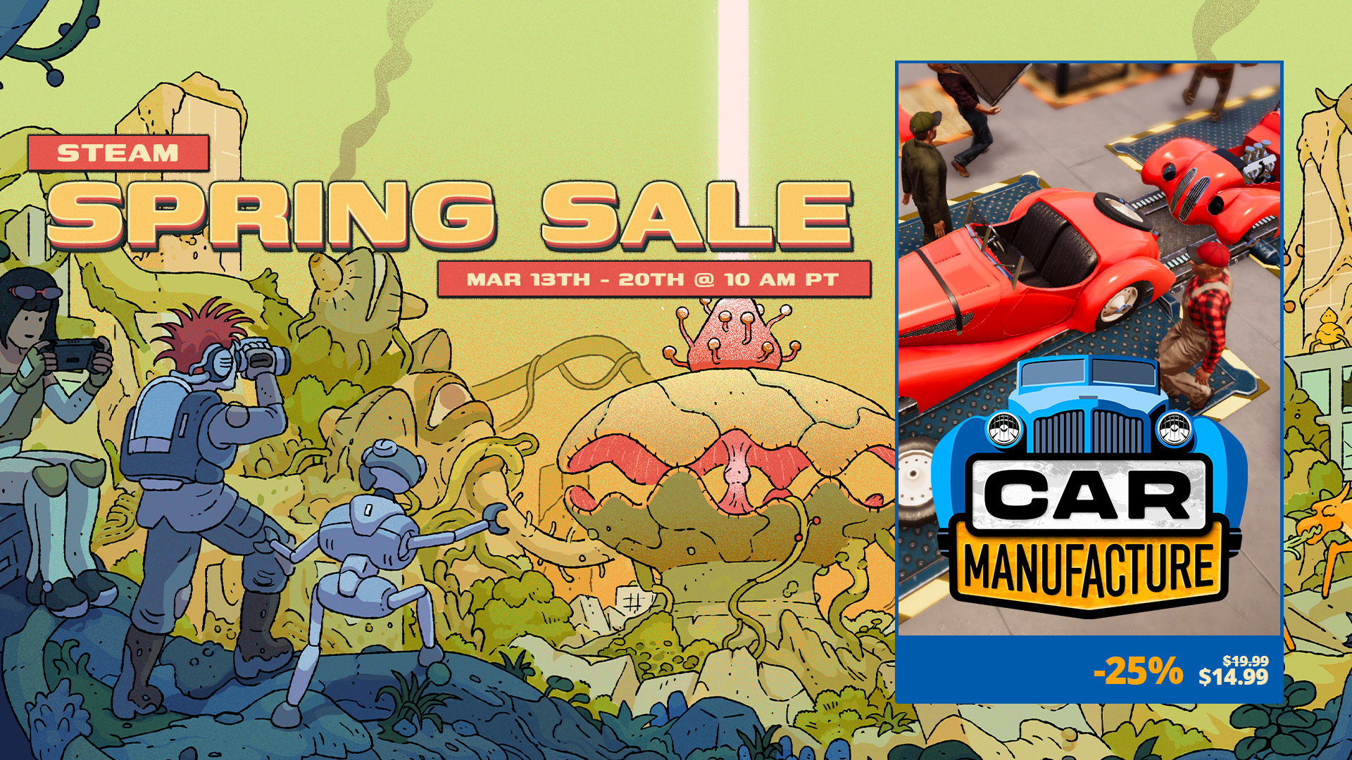 Great news! Our car factory sim, Car Manufacture, is dropping 25% off during the Steam Spring Sale. From March 13 at 10:00 until March 20 at 10 AM PT, it's your chance to dive into building the ultimate car factory at a sweet discount.