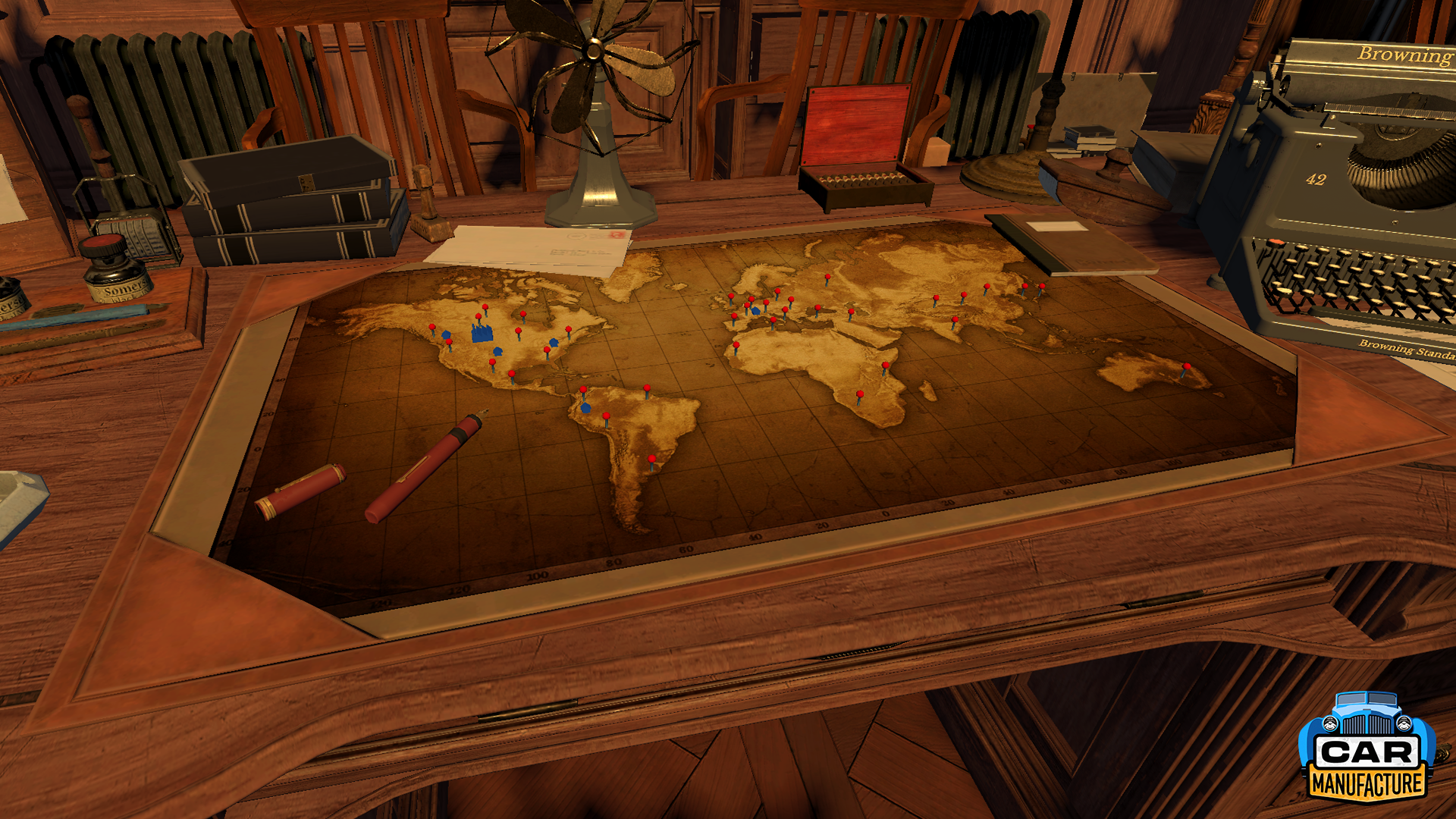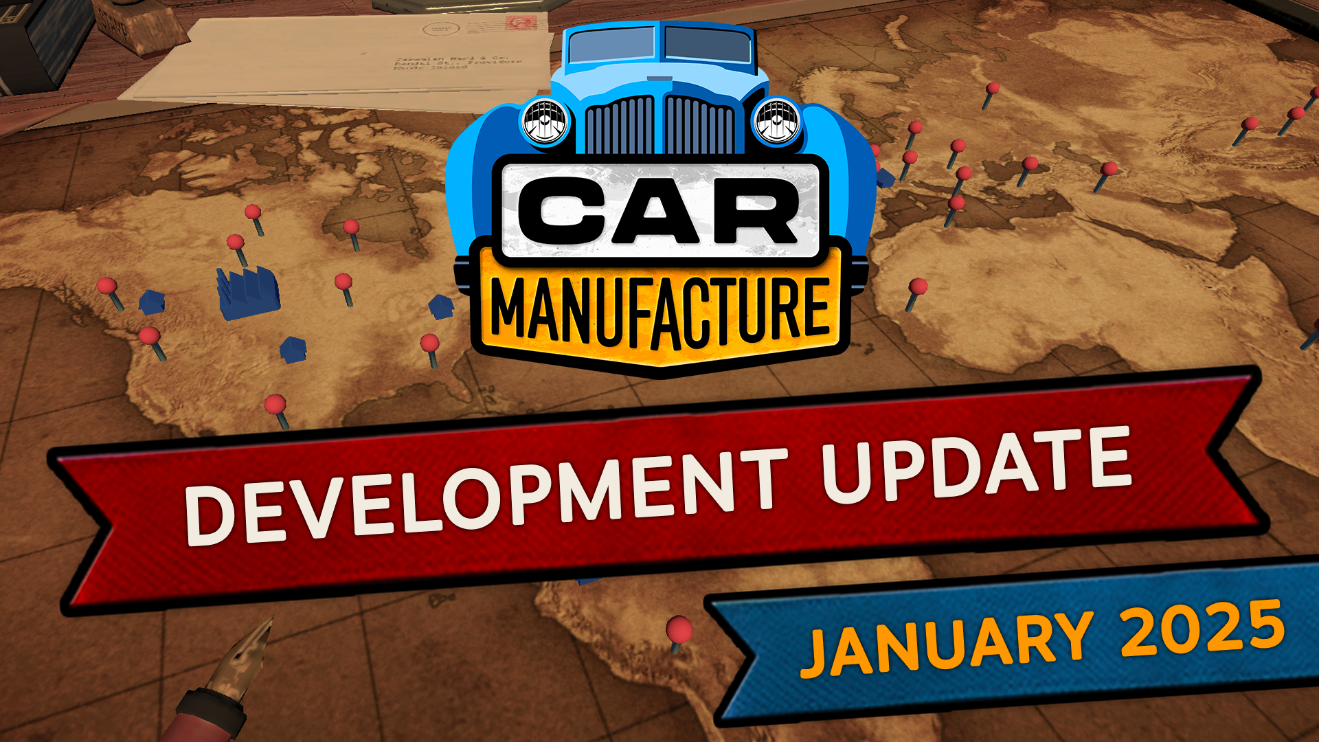 We're finally bringing maps and locations into Car Manufacture! Through the office view, you'll access the map UI, where key points of interest will be marked with pins. But this isn't just a visual upgrade - it's the foundation for major upcoming mechanics like part production, material shopping, and even opening your own dealerships. In short, it's a major step towards pushing the world of Car Manufacture into a more advanced and dynamic stage.