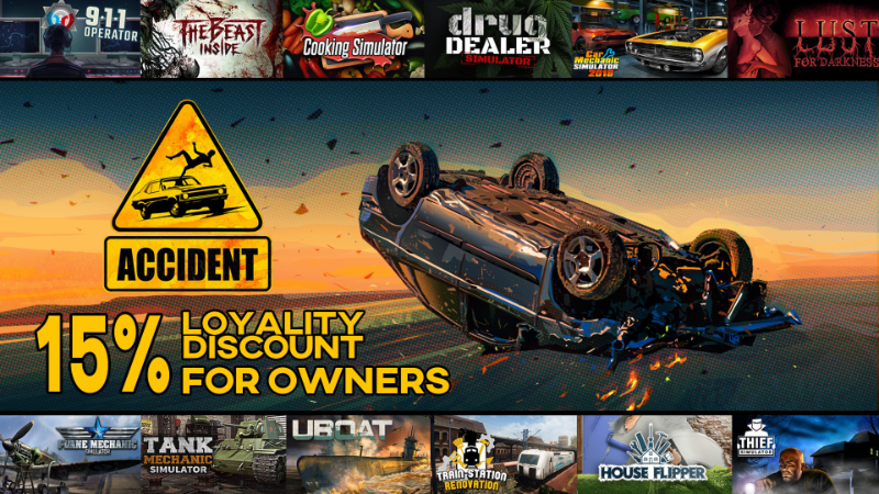 Games combined with Loyalty Discount: Thief Simulator Car Mechanic Simulator 2015 House Flipper Train Station Renovation Drug Dealer Simulator 911 Operator Cooking Simulator Tank Mechanic Simulator UBOAT The Beast Inside Lust for Darkness Plane Mechanic Simulator