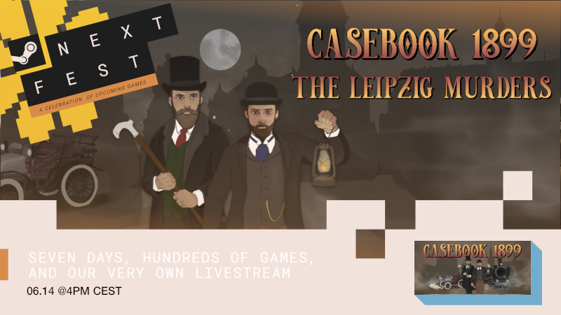 The game will also get its first ever Developer-Stream: Be sure to tune in and get an exclusive look behind the scenes of Casebook 1899 - The Leipzig Murders.