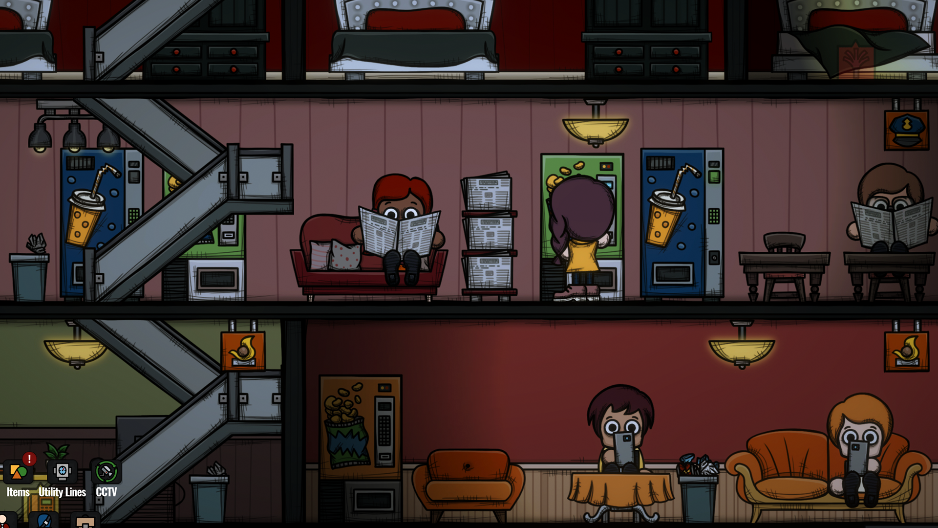 In the previous version of the game, vending machines functioned more as room decorations, with customers using them as part of their room interaction modules. Back then, vending options included tobacco machines, cold drink machines, hot drink machines, and snack machines. During Early Access, we expanded the interactivity of bookshelves and newspaper racks, allowing customers to use them as vending-like items that generated income for the player, though these didn’t require inventory items.
