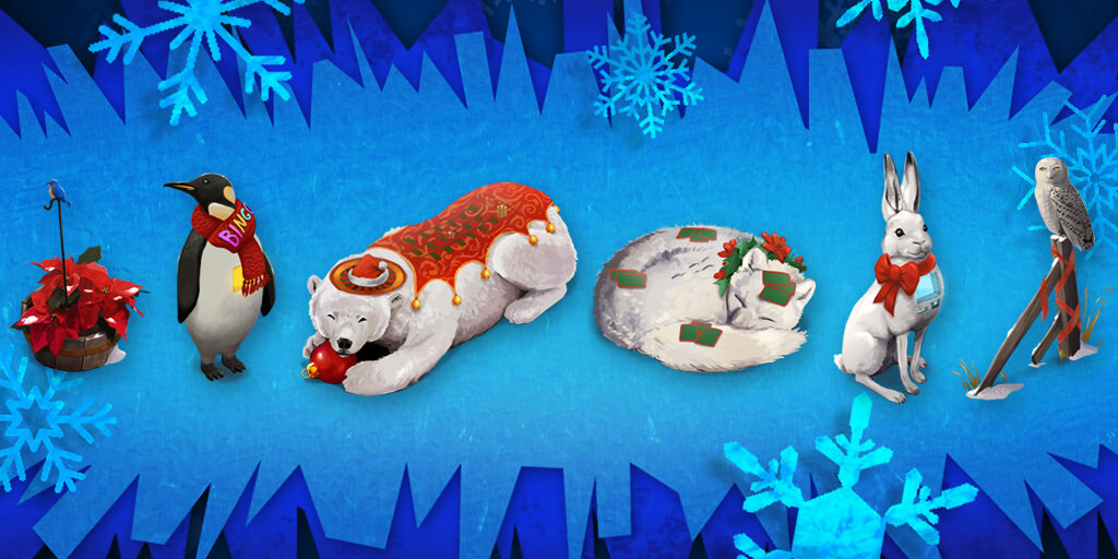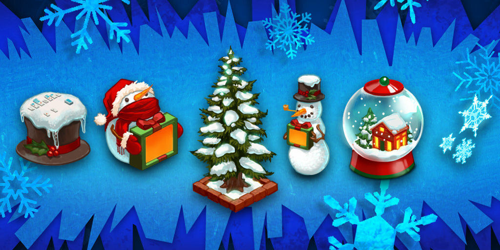 The city is decked out for the holiday season and we have 6 exciting limited edition items available! Get the details on how you can get yours before they are gone for good after January 6 by clicking on the snowflake icon at the top of the game screen.