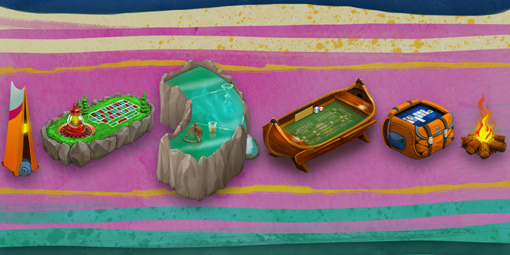 We have 6 new limited edition summer-themed items available for your casinos! Get the details on how you can get yours before they are gone for good after July 31 by clicking on the beach ball icon at the top of the game screen.