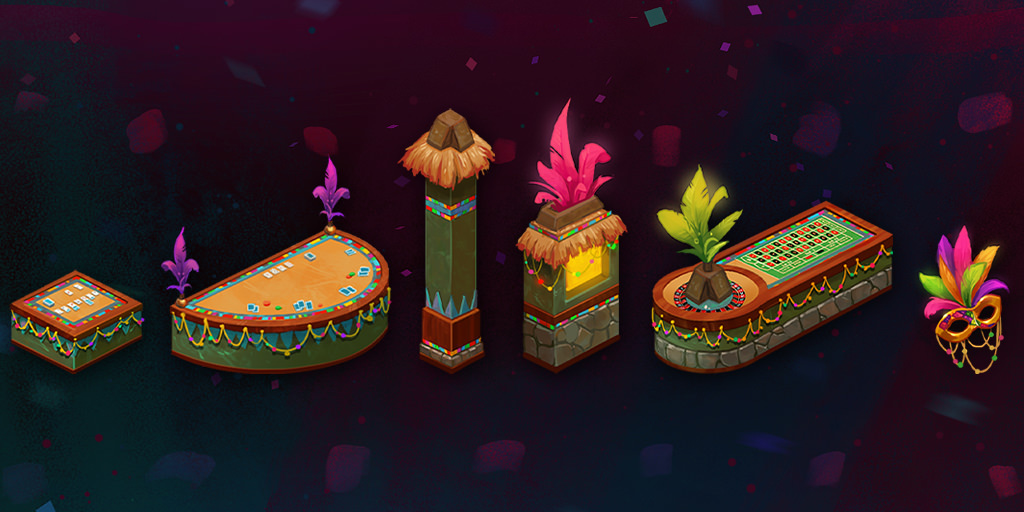 Join up with the rest of the community and collect the most Mardi Gras beads from the casinos of GoldFire City! Click the beads icon next to the promo icon to see the progress and get details on how to participate in this community-wide contest. Participants that reach their goal and the community goal will receive a new limited edition trophy item!