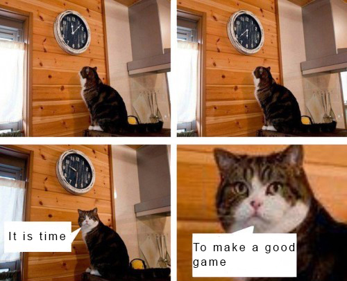 Hello. Please feel free to suggest anything abot game. We are really out od ideas now, so your advices will be very useful! We have two goals now. First. Make better comunications with humans with opportunity to share home. Second. We want to add different gameplay objects to the world.