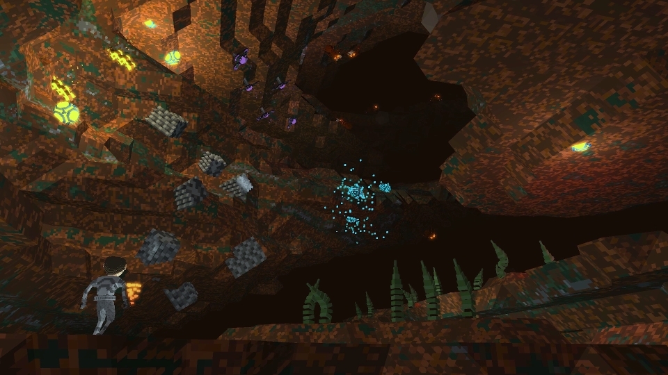Endless Subterranean Labyrinth We use a unique combination of procedural generation and manual hand-tuning to produce the world of Caverns. This provides us a consistent backdrop for our story while still allowing for an infinite, destructible world. As there are geographic similarities between individual machines, we encourage the community to share any cool locations they find!