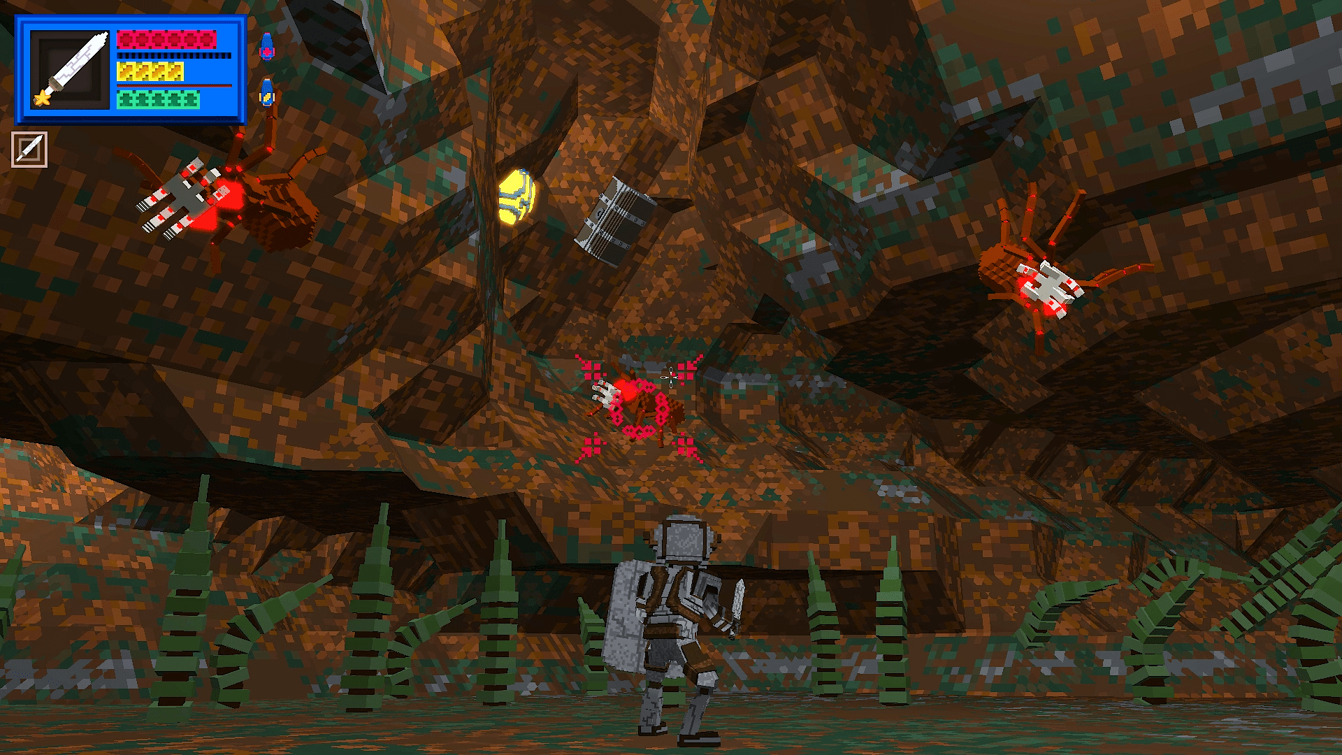 Dungeons: Dungeons will have an entrance via the sector's Overworld (the place you currently spawn in). Unlike the Overworld the dungeon's structure cannot be modified or destroyed. These areas will be composed of multiple rooms connected in a procedurally generated jigsaw, with a final boss room to find and conquer. Upon success the player will teleport back to the Overworld near the entrance of the dungeon.