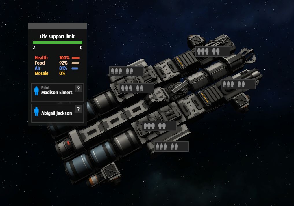 Crew: Added notification about lack of food which will not disappear until supply of food will be restored. The same works for oxygen and life support supply