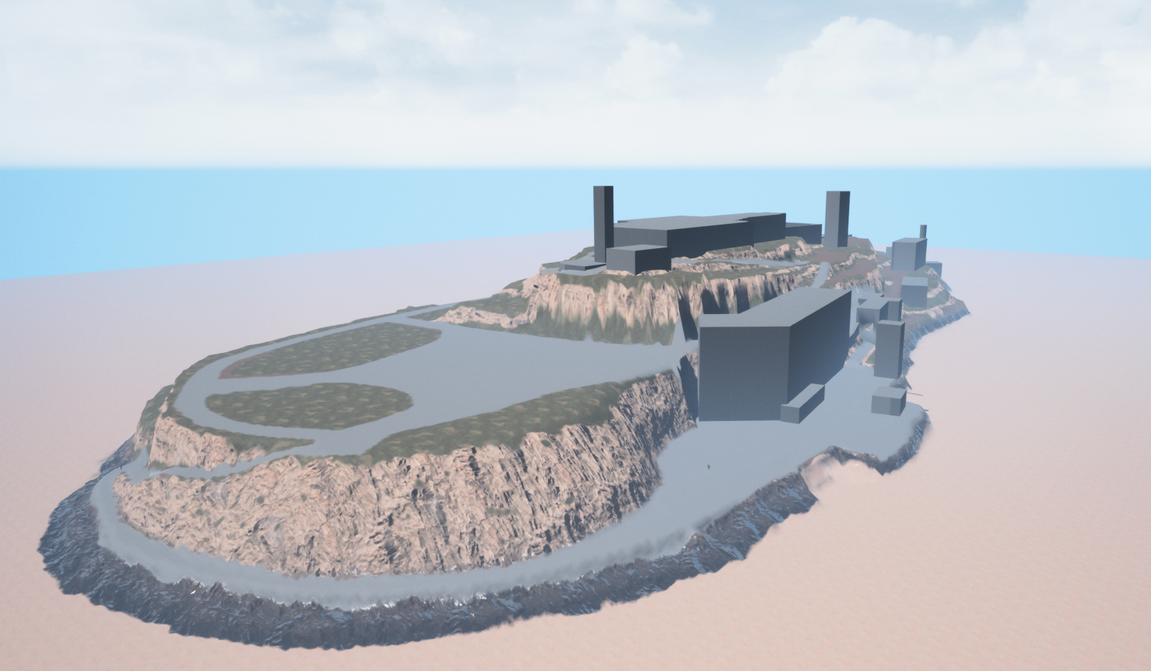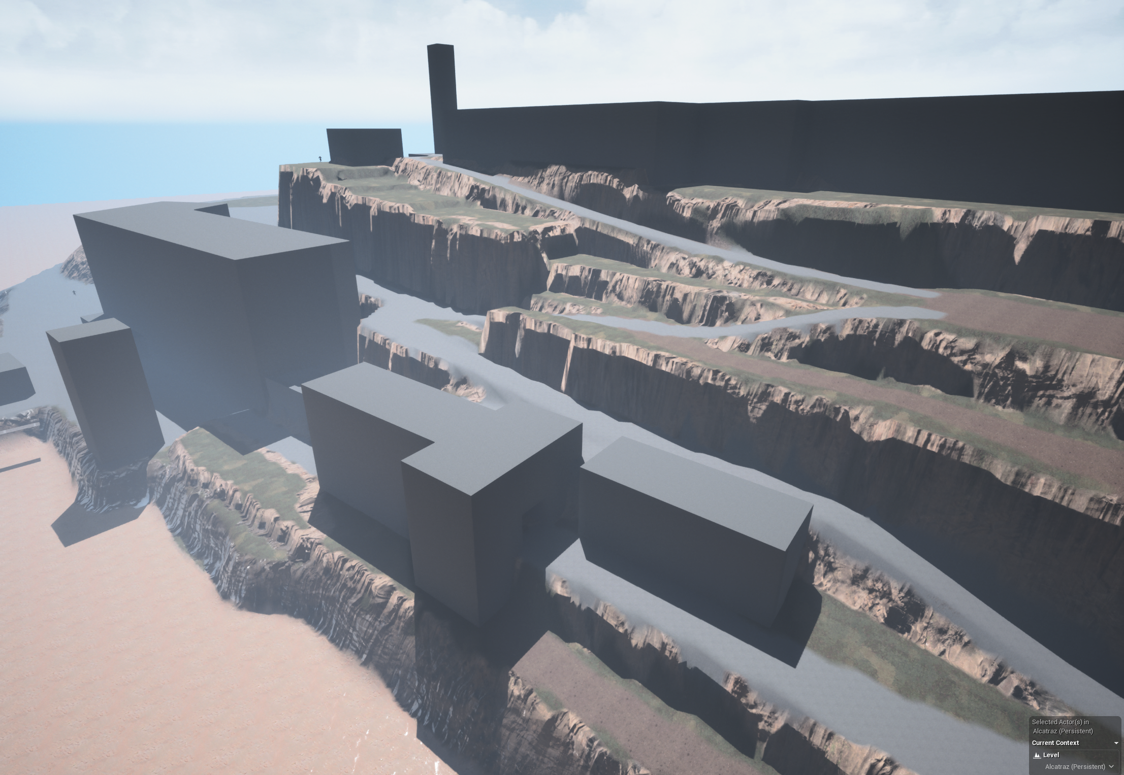 Our base blockout of Alcatraz Island is almost complete, though progress has been delayed due to wildfires in Los Angeles. Here are some early screenshots of the map: