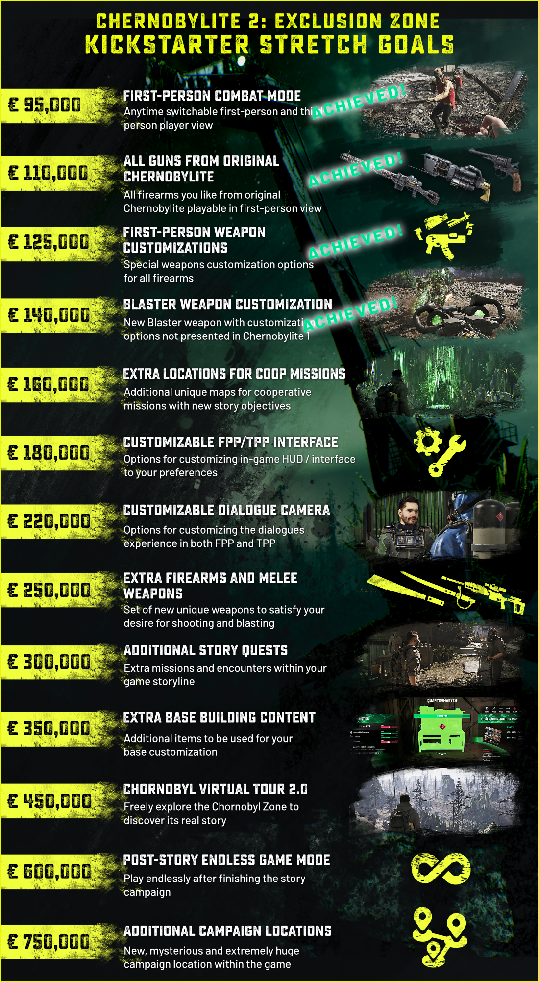 kailan-harris: 1. What has been the most challenging and the most exciting aspect of making the sequel? 2. Will a lot of the locations still be recognisable as Chernobyl still or will everything have drastically changed? 3. Does the studio have any other future projects in mind/ planned? 4. What are the challenges and benefits of being a small team working on such a great project? 5. What other ways than the kickstarter can we support and help out with development?