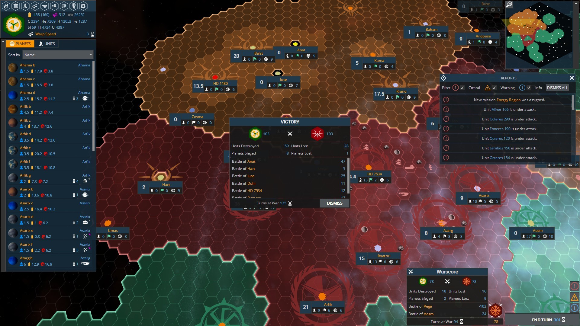 I added an another mode to take over the enemy planet. If you are at war, you can Attack the planet now. That will open another map with units, which were on orbit. If you destroy all enemy units, battle ends and planet will not be colonized. This mode is faster compared to Siege battle and more fun.
