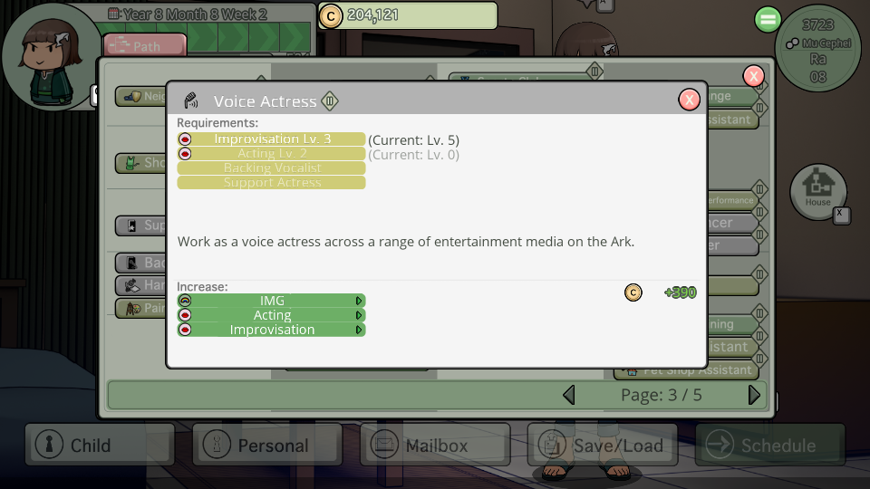 As player and parent, it's your responsibility to manage Ciel's time and needs. Every small choice you make will influence what abilities and personality traits Ciel develops over the course of the game - but over-schedule her, and she'll quickly become exhausted. Leading to bad behaviour, skipping activities, and maybe even a visit from the authorities...