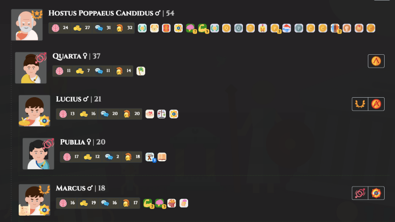 Release v1.4.5 + Traits (including genetic/congenital ones) can now stack + A few new character portraits + Stability improvements and bugfixes + Significant Balance tweaks + A couple of new achievements + Changes around elections, elected positions and pro-magistracies (plus Censor) + And more changes, tweaks and improvements