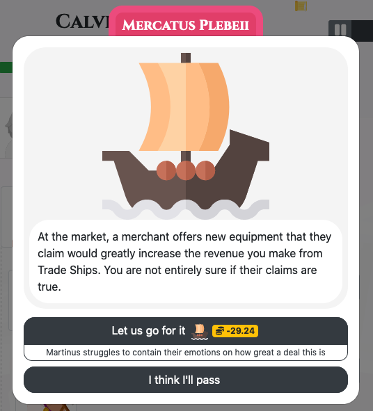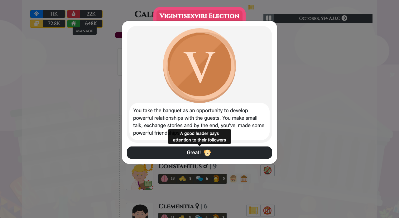 + Interface updates with a new sleeker, more calming UI + Bug and exploit fixes for perpetual senate posts, apprenticeships for wives of dead children, etc + Other tweaks and improvements + New Official Discord: https://discord.gg/ZVkxjC5