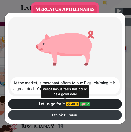 Release v1.3.2 + Multiple Bugfixes, tweaks and improvements + Gut feeling tooltip in Mercatus + Health boosts directly affect chances of curing illnesses, stress and depression + Balance changes