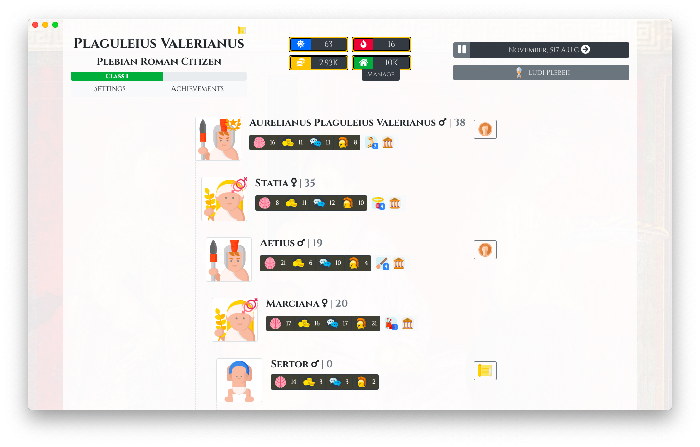 Citizen of Rome - Dynasty Ascendant is a sandbox role playing/management offline game where you control a character and their family in the Mid-Republic era of the Roman Republic