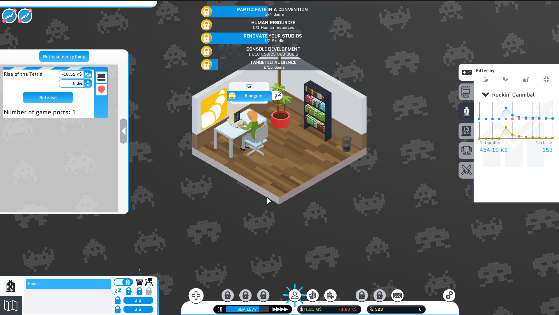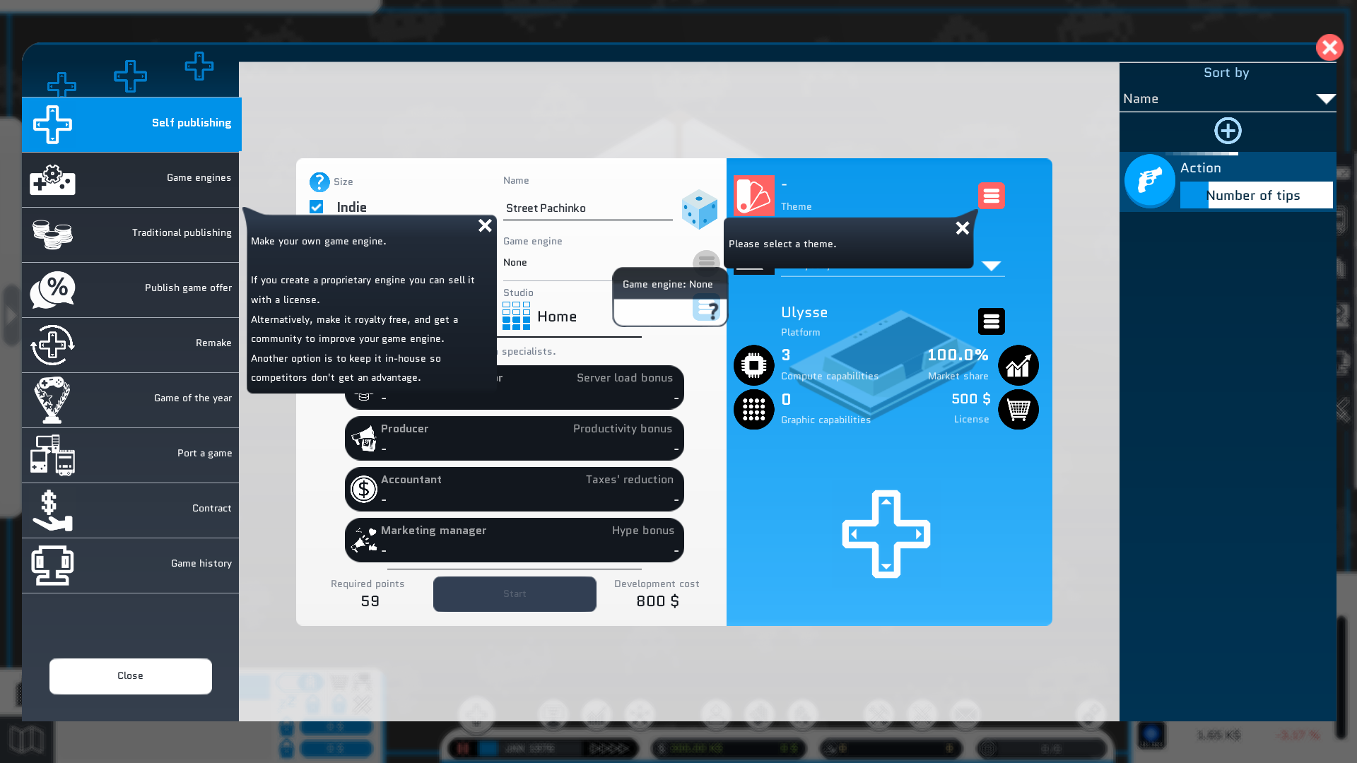 Another tiny update, it becomes regular now. Just adding a new feedback when you work with a competitor to make a game. As soon as you know you'll have to pay a penalty, if you don't have enough money, the game will warn you and suggest you to take out a mortgage.