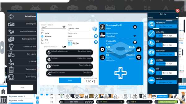 You can now make money thanks to your game engines or make them FOSS! (I'll let you find out what impact it has, you'll see how cool it is). And now you can also rent your competitors' game engines! This is the little extra that should make you happy!