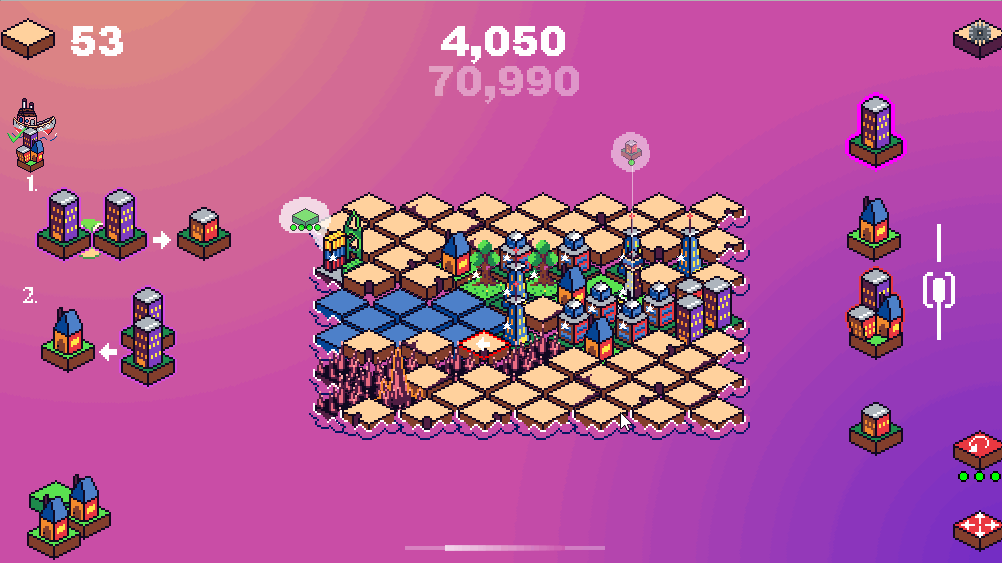 The new game mode is a free city build mode. It allows you to adjust the size of the island as well place any building where you wish. I added a few extra buildings that aren't in the regular game modes. As well as tiles that you wouldn't normally be able to place. It is, along with the rest of the game, very chill. It's totally optional and it unlocks after playing at least one round in the regular game.