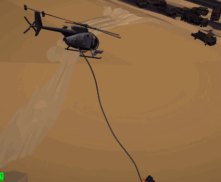 I think the coolest part of having a helicopter in a game is that it's still able to interact with things on the ground. And the rope just expands those possibilities.