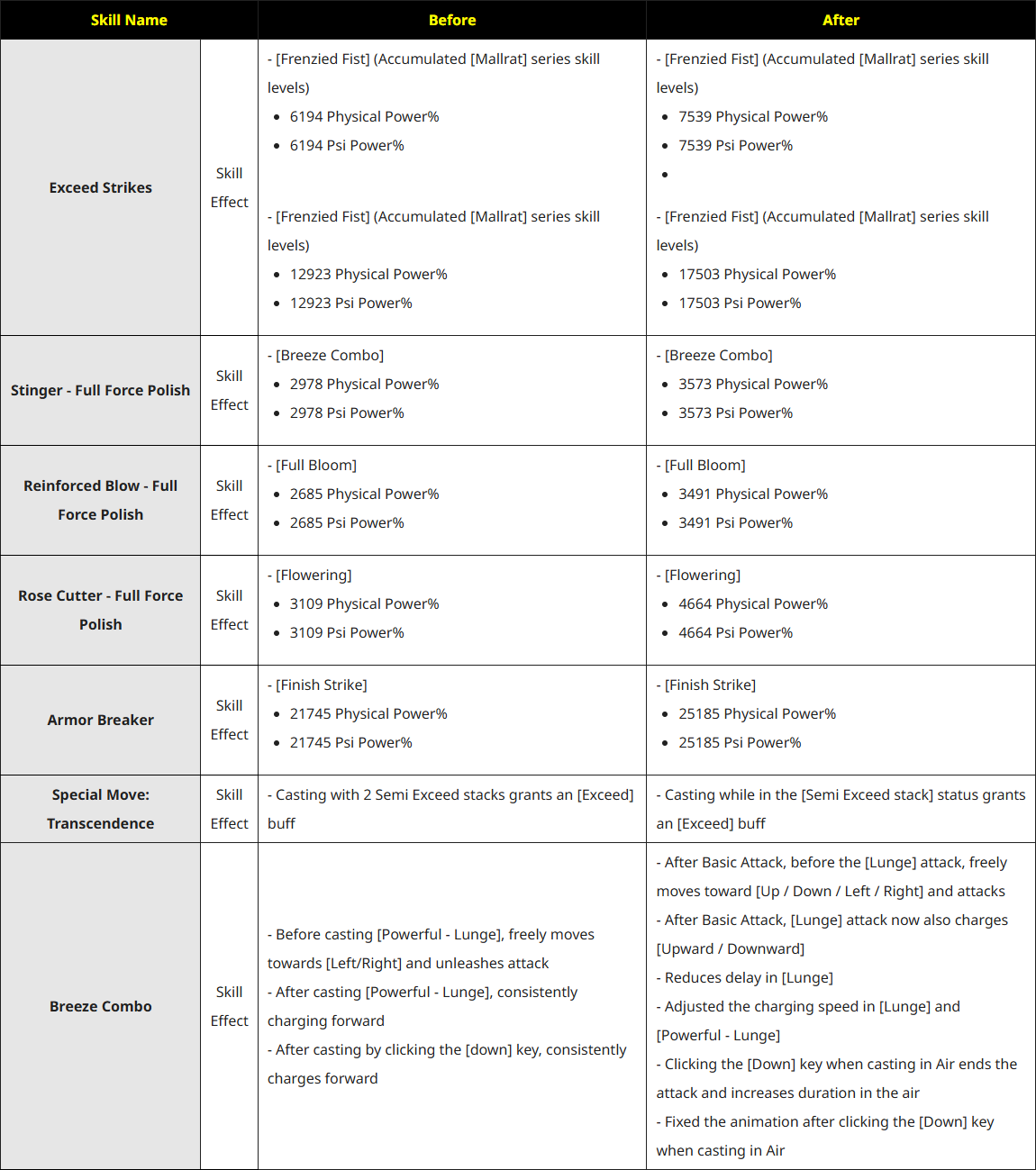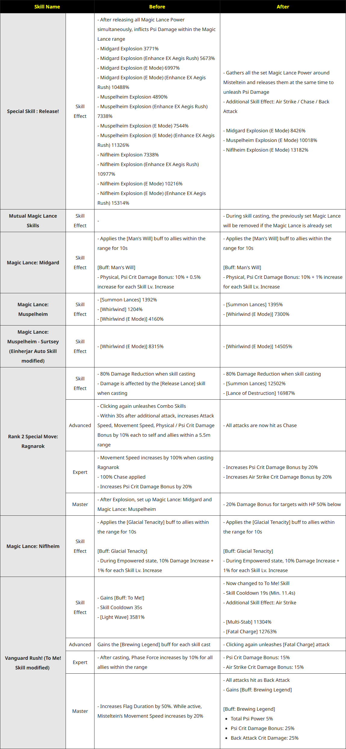 Skill Remake for Misteltein Character