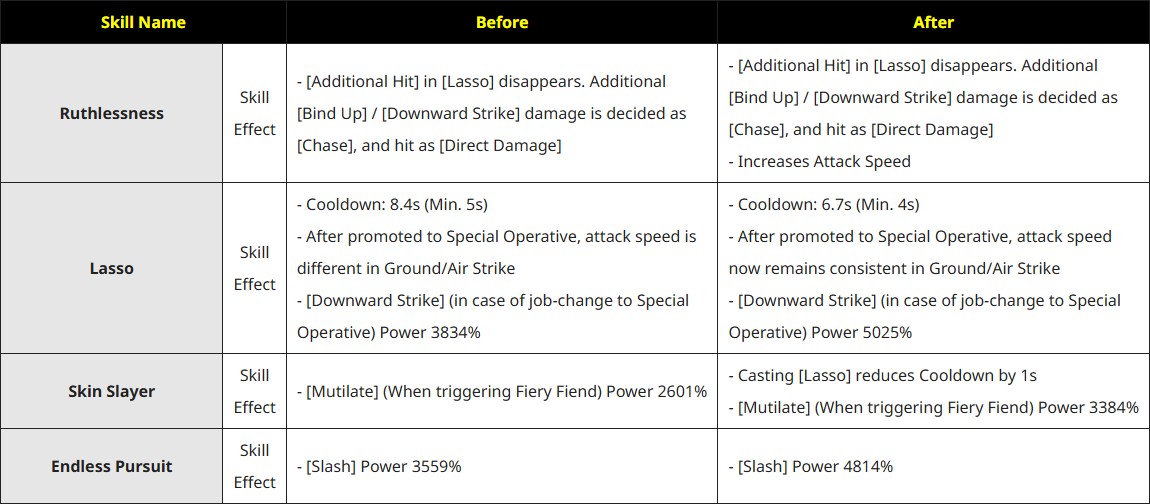 ▶ Removed the [Doppelganger - Hunter] mob’s Super Armor Crash attack from the Flame Wave "Han High School" dungeon.