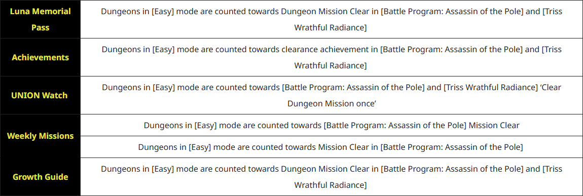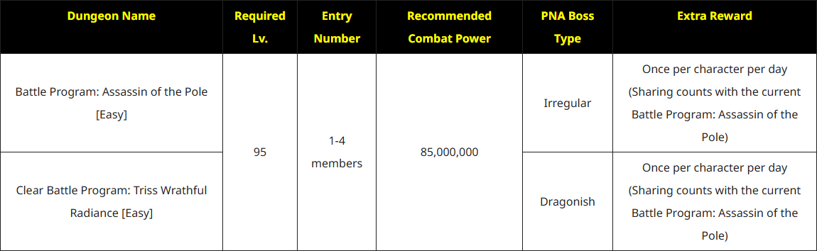 Added Easy Mode Dungeons to Battle Program: Assassin of the Pole and Triss Wrathful Radiance.