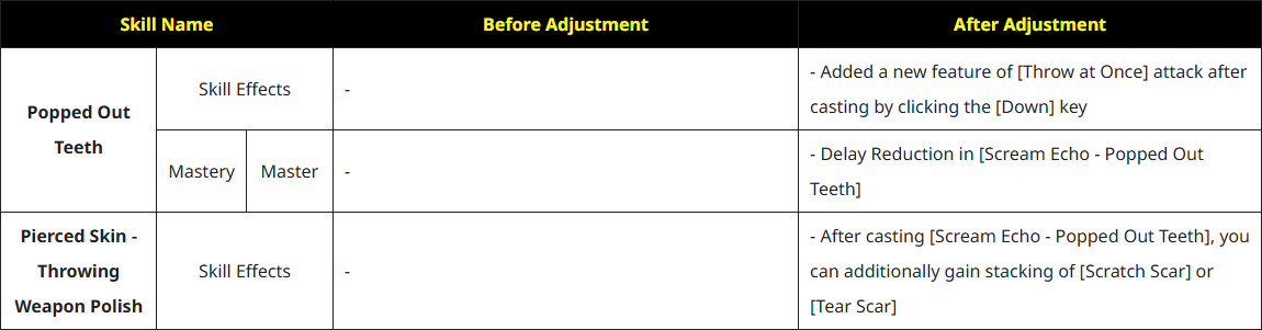 ▶ Fixed an issue where the target skill enhancement in Eunha character’s [Passive: Persistence] tooltip did not indicate [Popped Out Teeth].