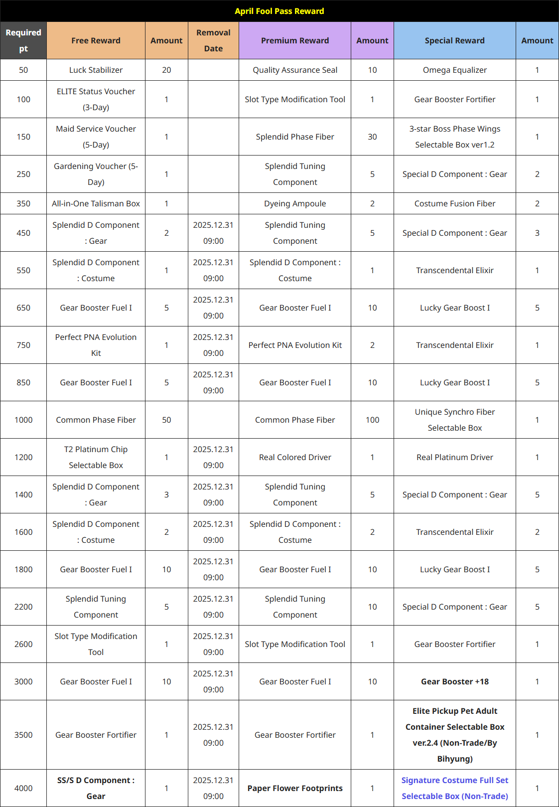 [table][tr][th] [color=#FFE135]April Fool UNION Pass[/color] [/th][th] [color=#FFE135]N-coins[/color] [/th][/tr][tr][td]