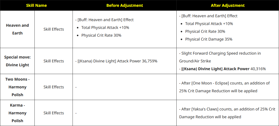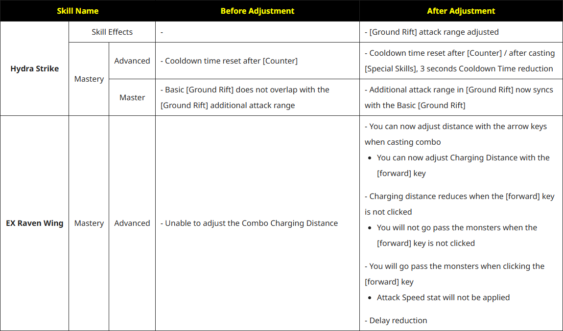 ▶ Fixed an issue where Luna character’s [EX Raven Wing] did not properly apply attack power when Mastery-Master was unlocked.