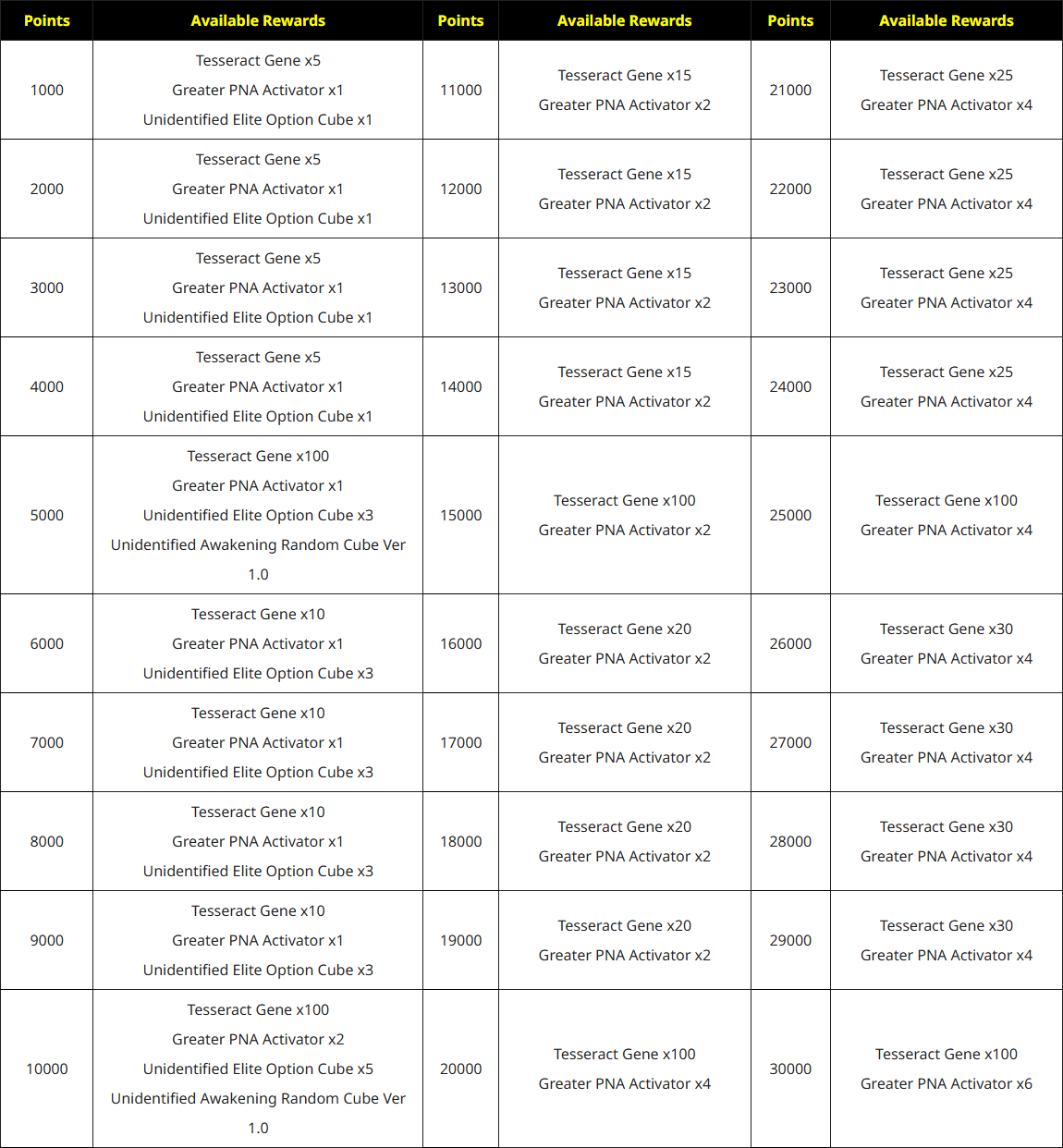 The following rewards up to the accumulated points will be dropped from the dungeon: