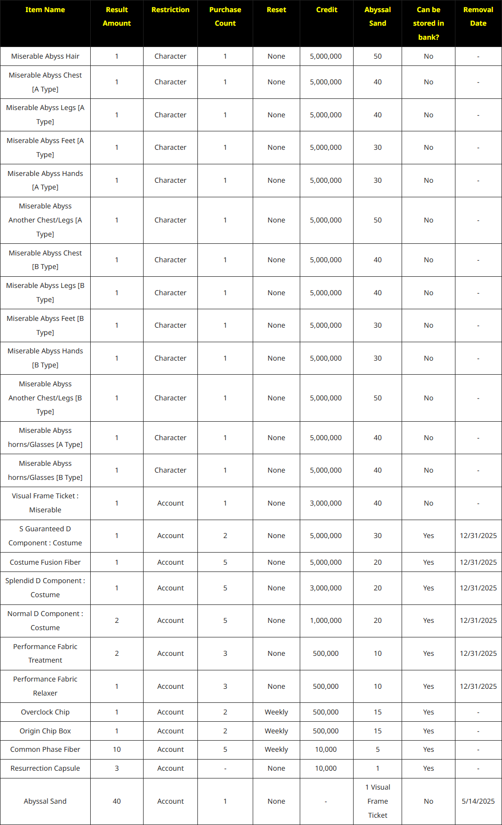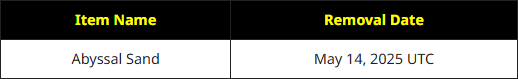 Item Shop and Items from Shop Removal Date: May 14, 2025 UTC