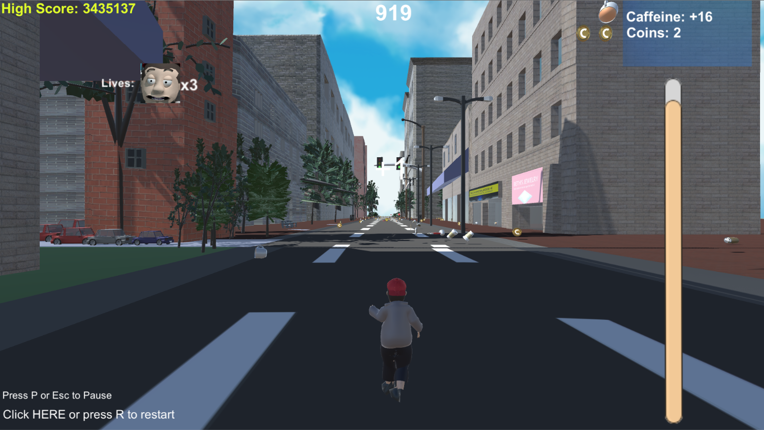 -A 3D Coffee Shop [currently has three Powerups from the first game along with donuts that grant the player extra lives from the start of each run from that point on]. More items coming soon!