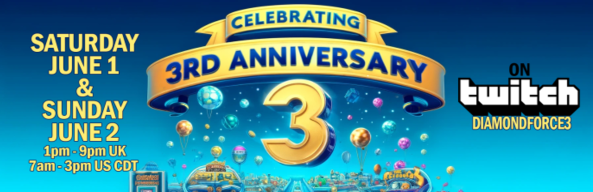 Twitch Channel: Diamondforce3 On Twitch Time: 1pm-9pm (UKTIME), 7am-3pm (CDT) Date: 1st & 2nd June