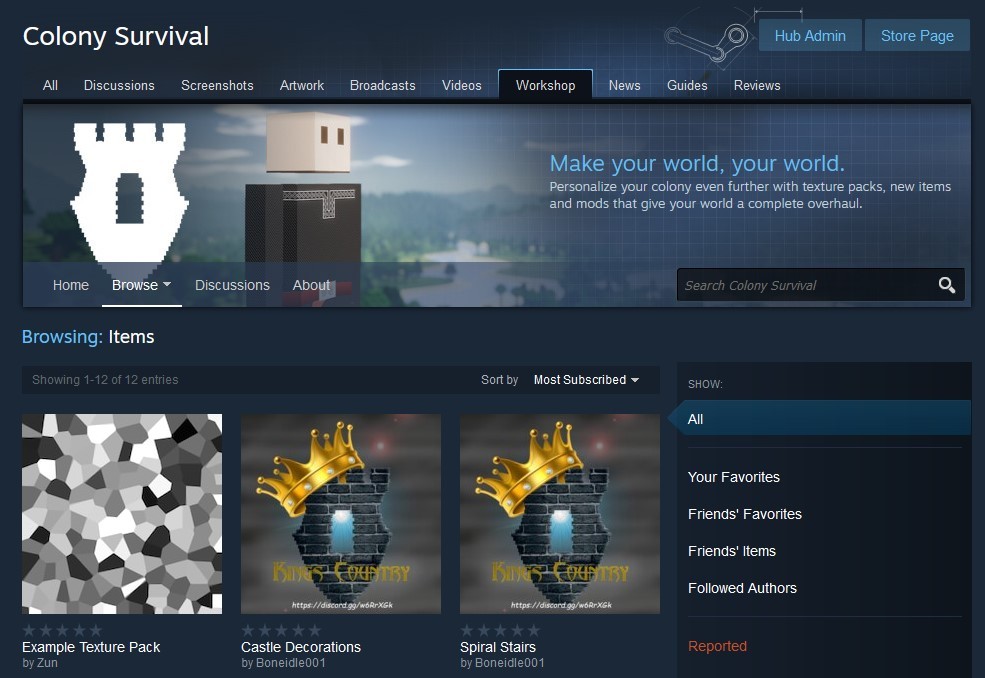 When you've tried the Workshop and the new features, please let us know your opinion! What's working well, what isn't? Which mods are your favorite? Nearly all modders have joined Colony Survival's Discord, so that's a way to reach them if you want to praise their mods and give feedback :)