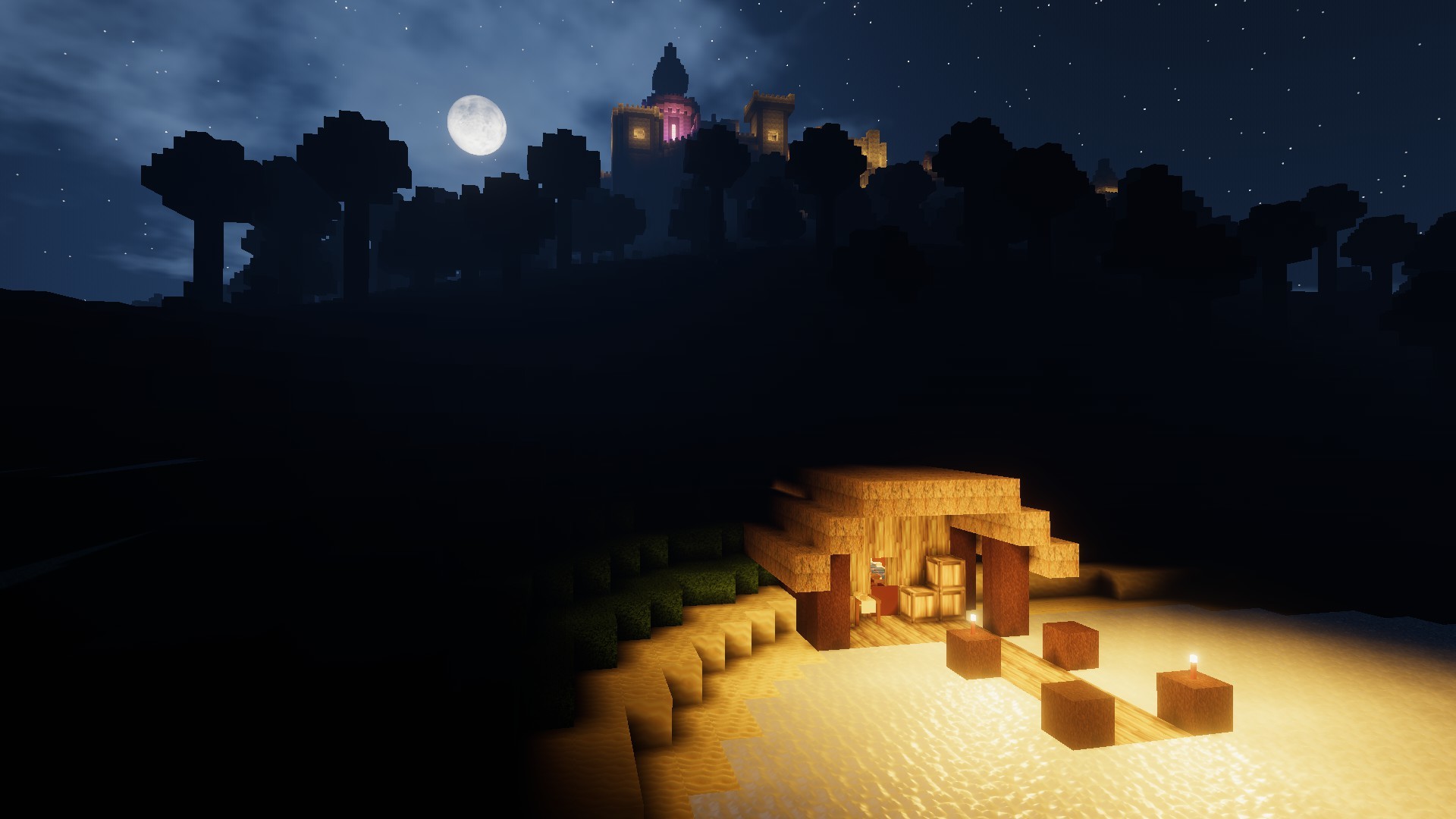 Changes are way more dramatic here. There’s way more light leaving the house. It makes sense for light to get out of the windows and door, but the light bleeding through the roof is a bit strange. In general, we like the change, but we’re still tweaking things, and once the sun and moon use floodfill as well it should look very different again! This system should give us more control over light and everything that interacts with it - making things like better water shaders and transparency easier to do.