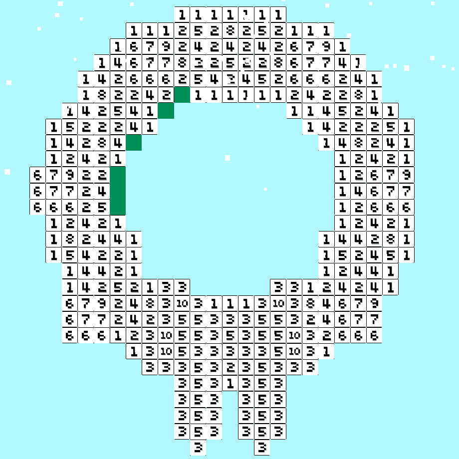 You may notice that no matter what image you are coloring, the background is icy blue and there is pixel snow falling down the screen!