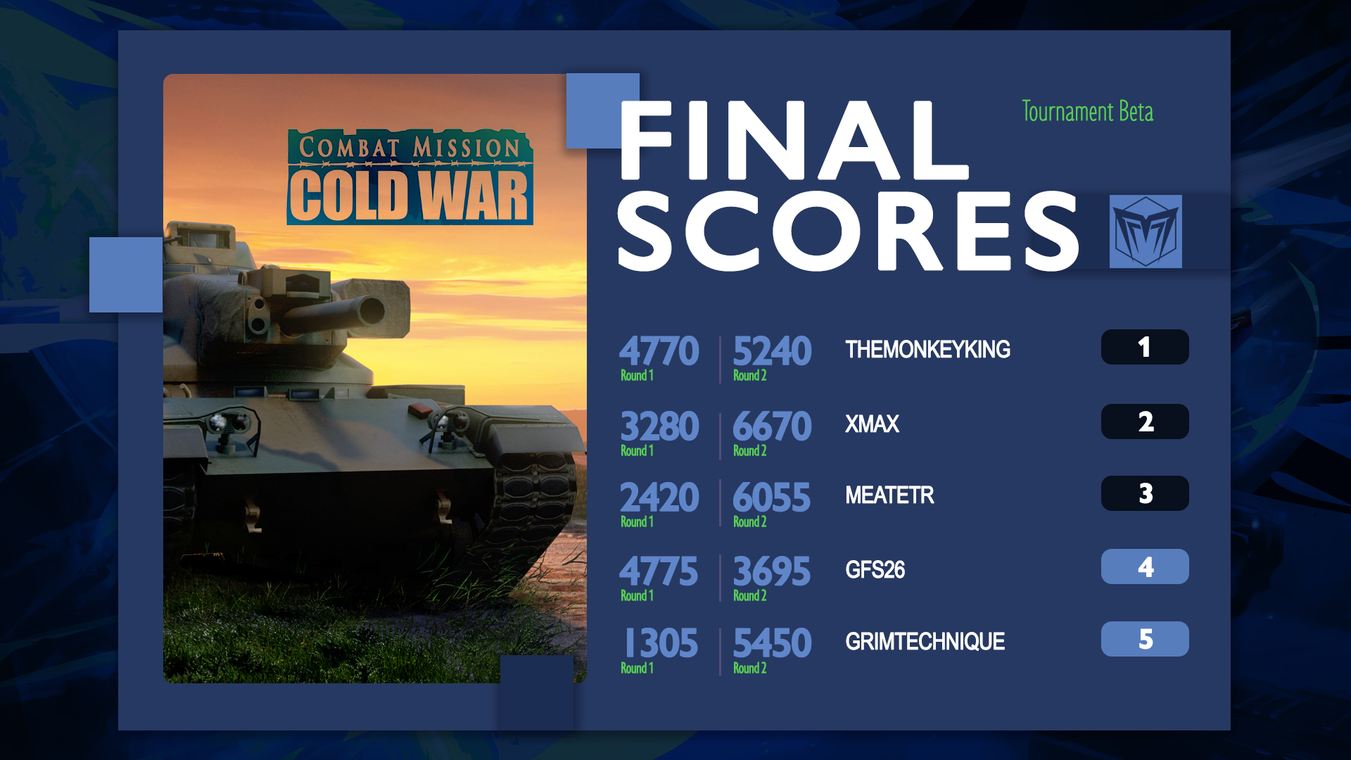 The Combat Mission: Cold War Beta Tournament is over. Afther 2 rounds of hard battle we have the winner TheMonkeyKing.